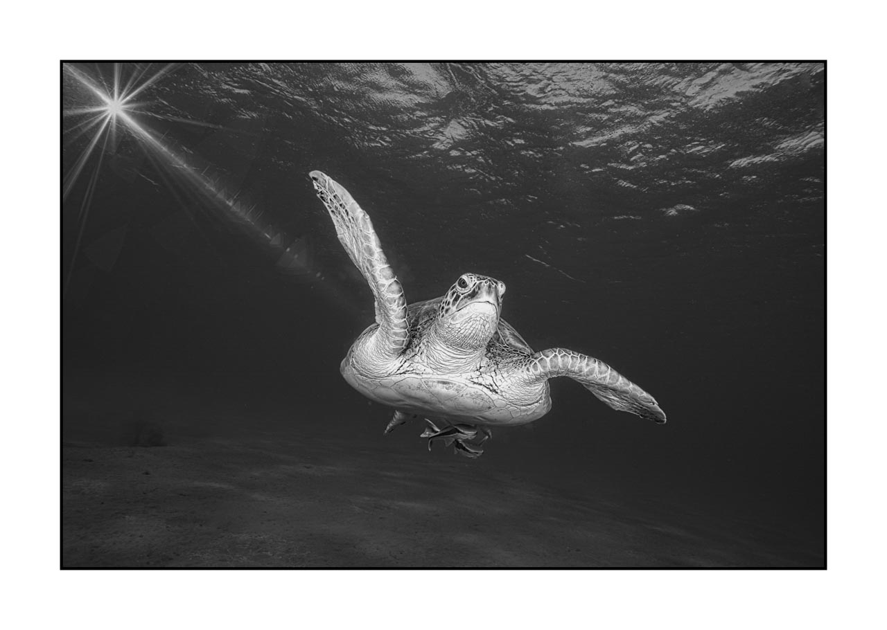 Tortue marine X: Finition museum Photo : 90cm x 60cm. Avec cadre : 103cm x 73cm.