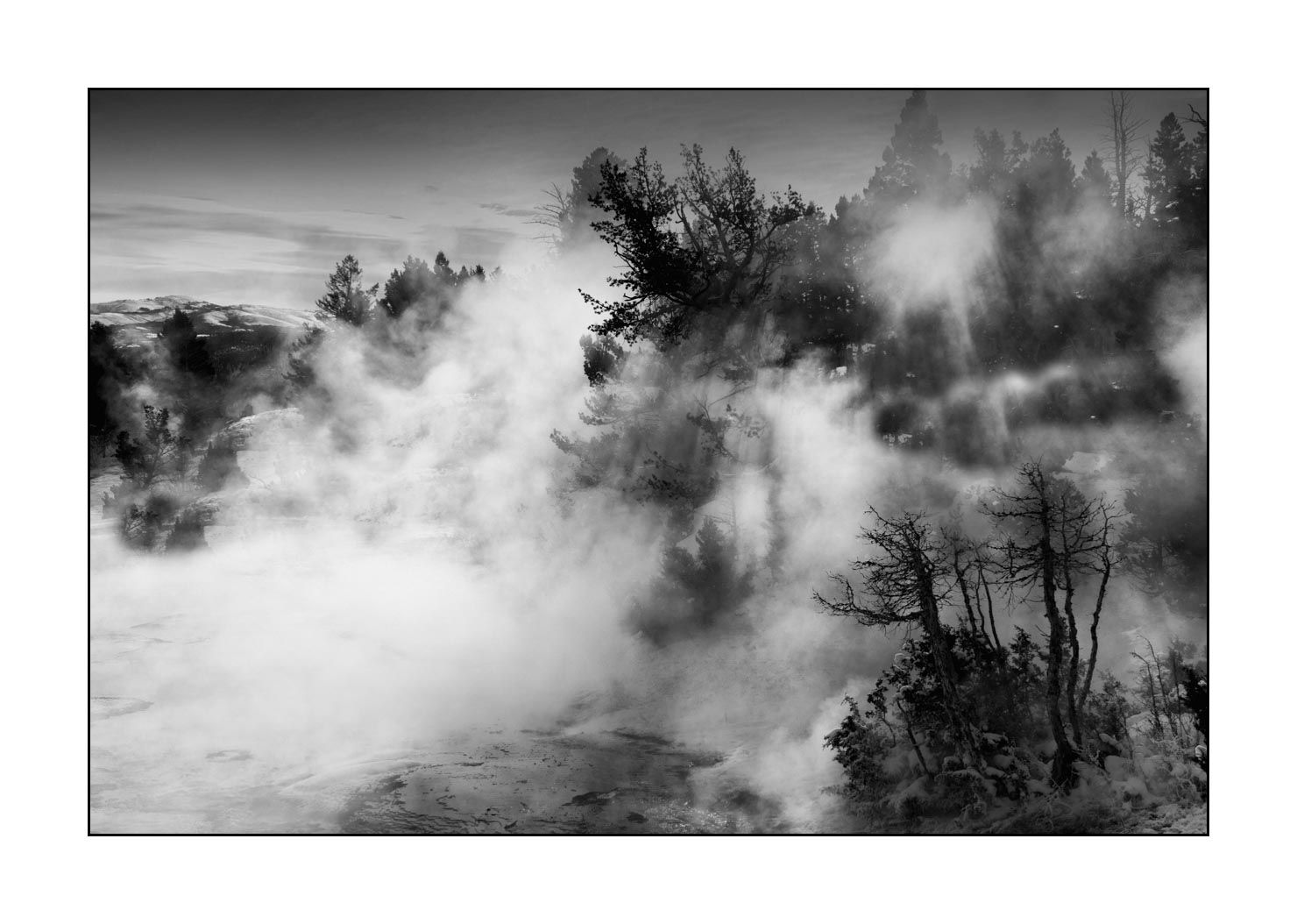 Yellowstone en hiver X: Finition museum Photo : 30cm x 20cm. Avec cadre : 33cm x 23,5cm.