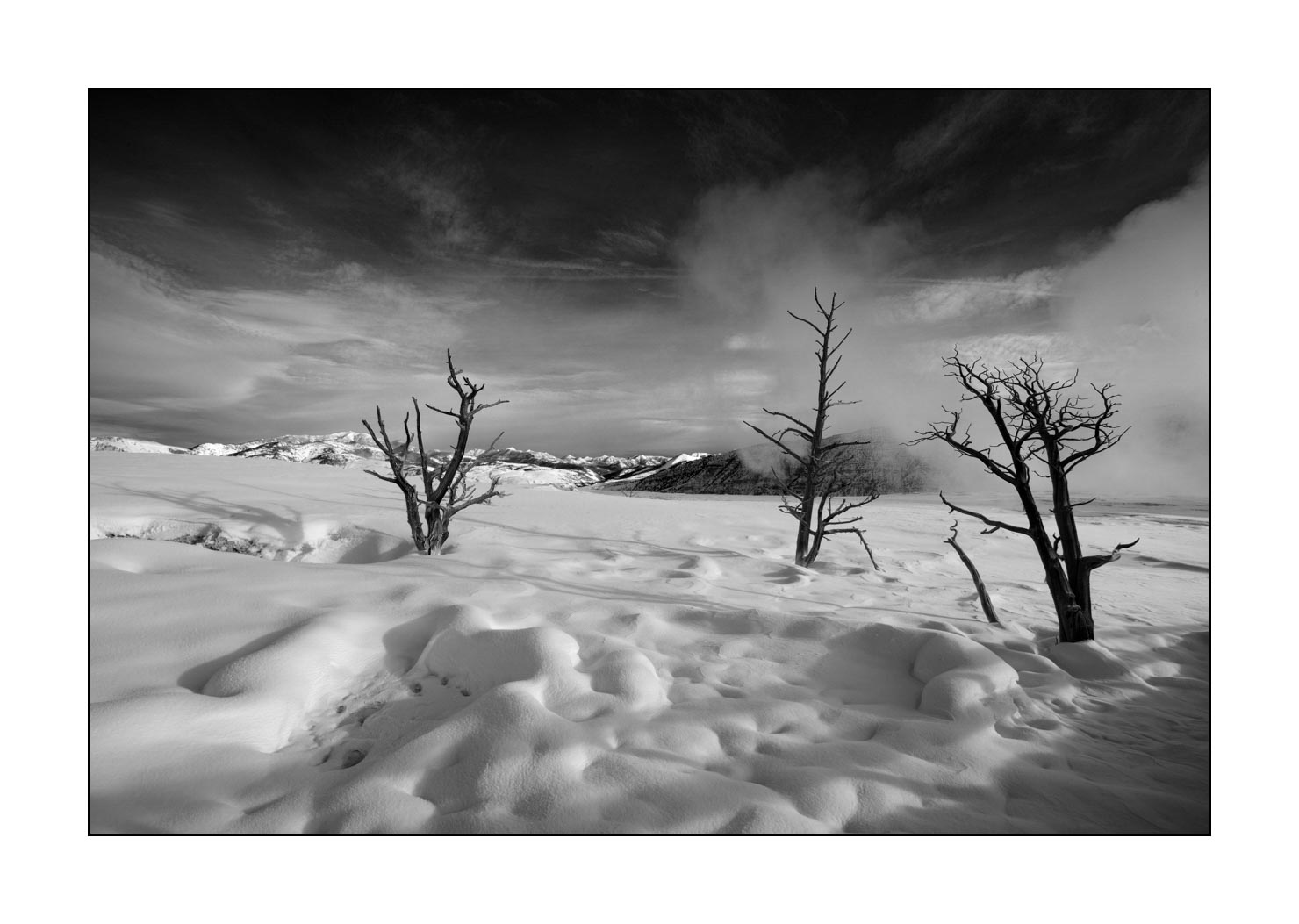J'ai choisi de montrer des paysages naturels du parc national du Yellowstone dans l'état du Wyoming aux Etats-Unis. Toutes les photographies ont été réalisées pendant l'hiver. La région est couverte de neige d'un blanc immaculée.