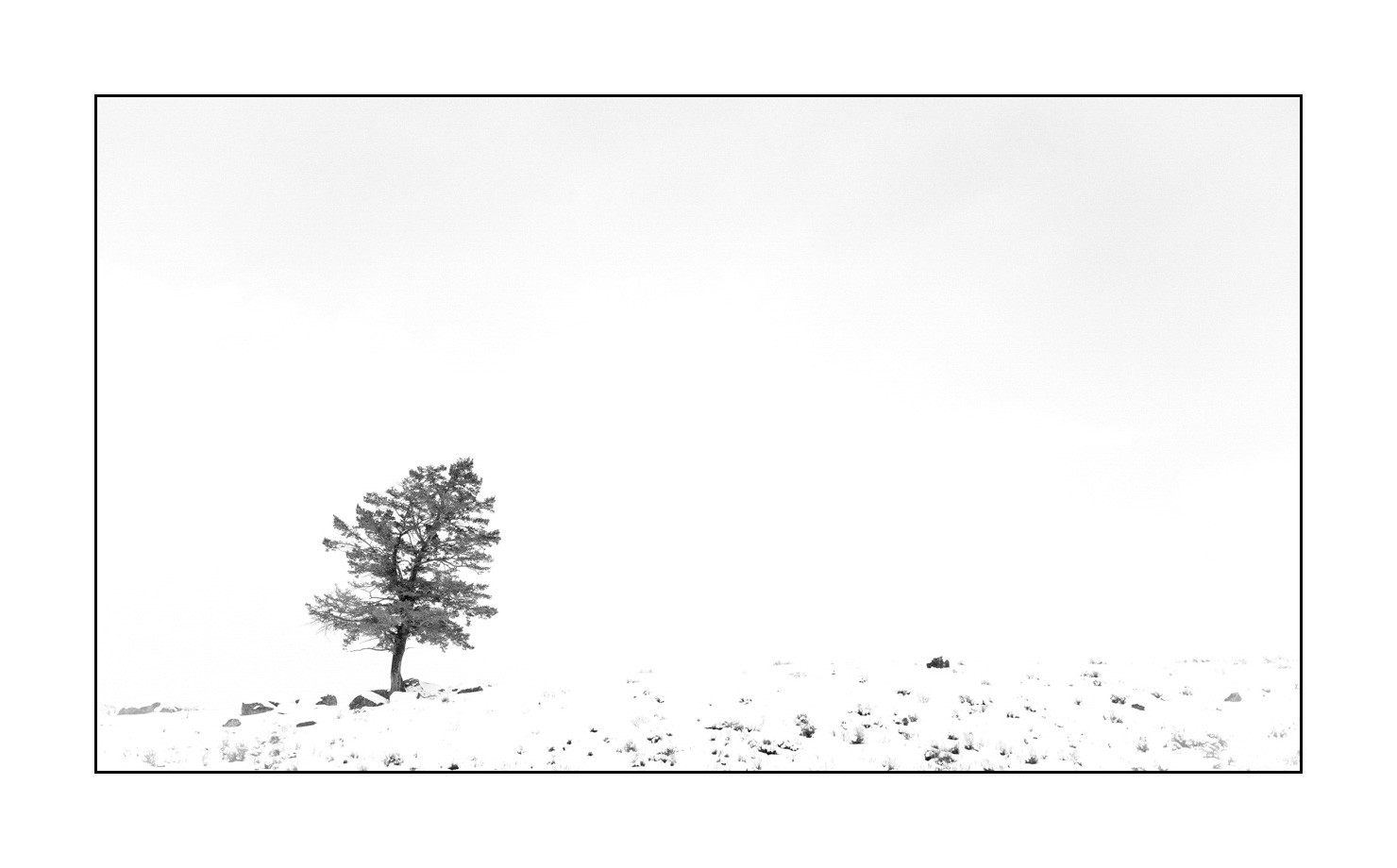 Les arbres que j'ai choisi de montrer sont souvent seuls, isolés dans un manteau neigeux immaculé. J'ai voulu évoqué la solitude mais aussi la force et la résistance quand les éléments naturels sont rudes. Les températures dans le Yellowstone peuvent descendre à -45 degrés Celsius pendant l'hiver. Pourtant les arbres survivent et résistent à ces températures extrêmes.