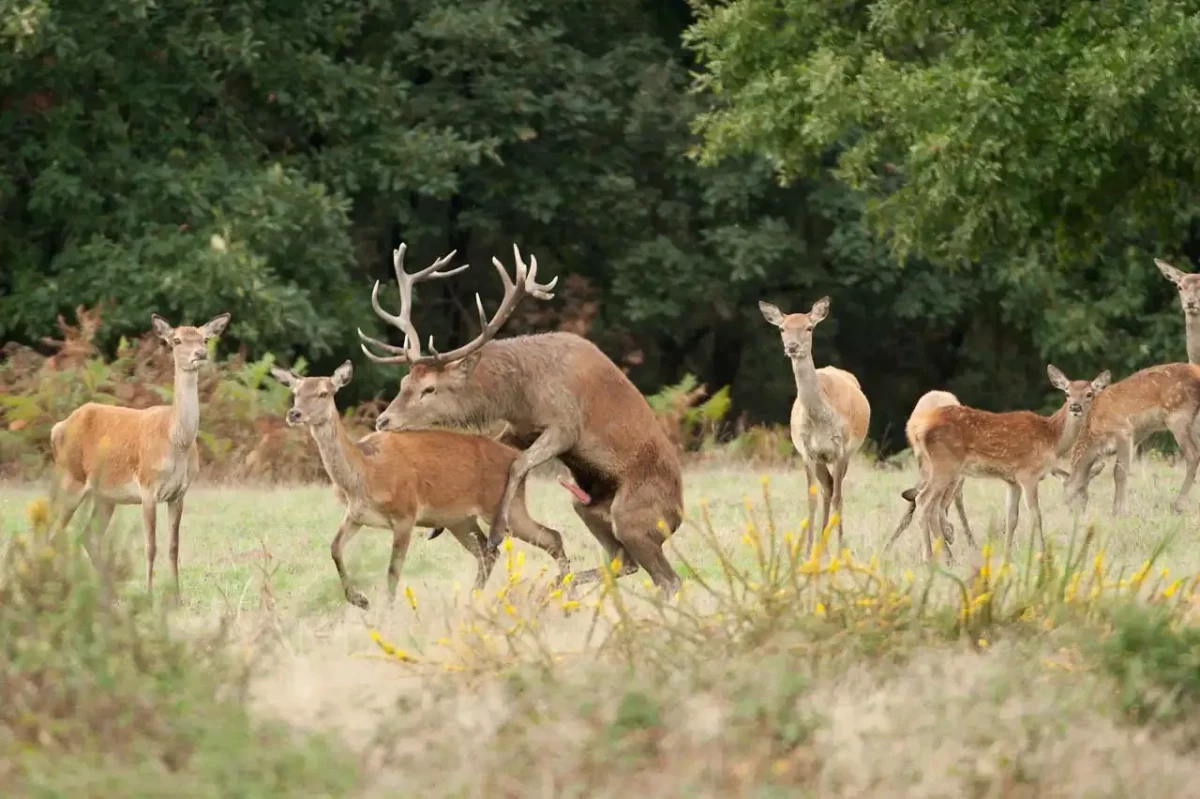 La saison du brame marque la saison des amours chez les cerfs élaphes. Les vieux mâles reconstituent des hardes de biches. On peut dénombrer jusque 30 femelles. Les jeunes cerfs essayent de se constituer une harde en défiant les anciens.